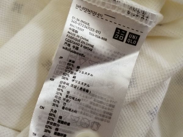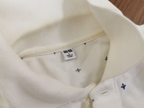 kkyj2639 ■ ユニクロ ■ ポロシャツ カットソー トップス 半袖 鹿の子 アイボリー 白 L