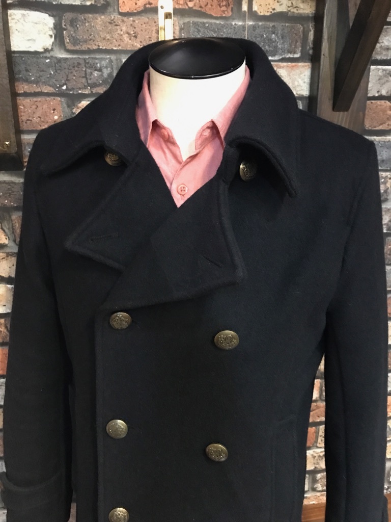 スッキリとしたシルエットとアンティークゴールドのボタンがポイントです(≧▽≦)