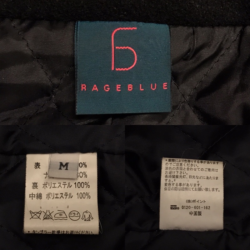 F779 メンズコート RAGE BLUE レイジブルー Pコート カジュアル おしゃれ 定番 アウター タイト ウール メルトン 無地 ネイビー/ M