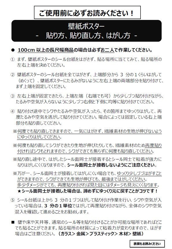 ■「貼り方、貼り直し方、はがし方」説明書付属