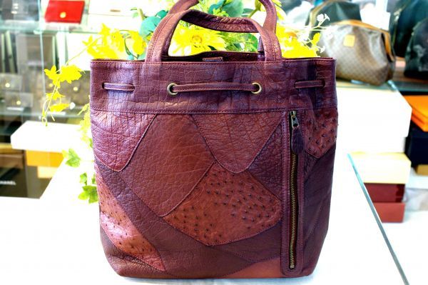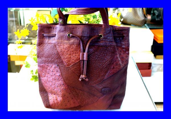 ■商品名○美品 イビザ IBIZA パッチワーク オーストリッチ バッファロー トートバッグ B0221 | |||||||||||||
