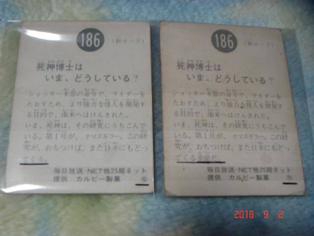 激レア カルビー 旧仮面ライダーカード NO.186×2枚 (N版&S版) エラーカード『文章面:文章の違い』