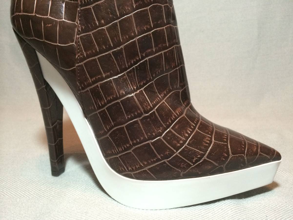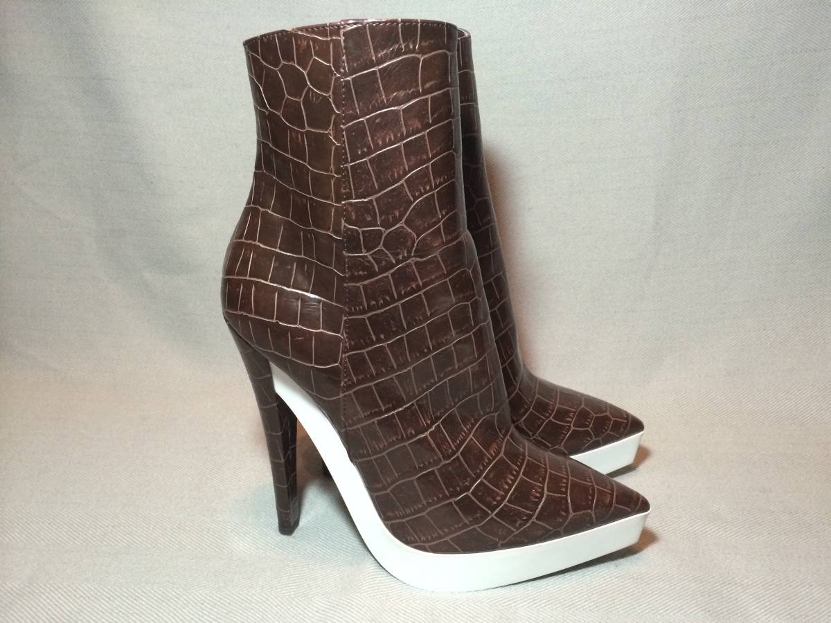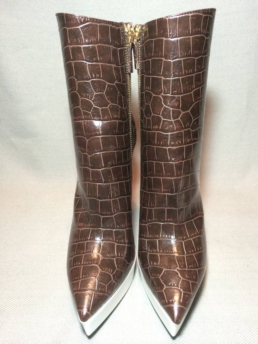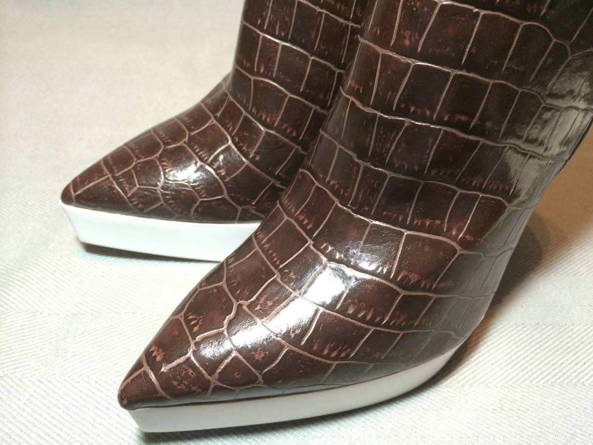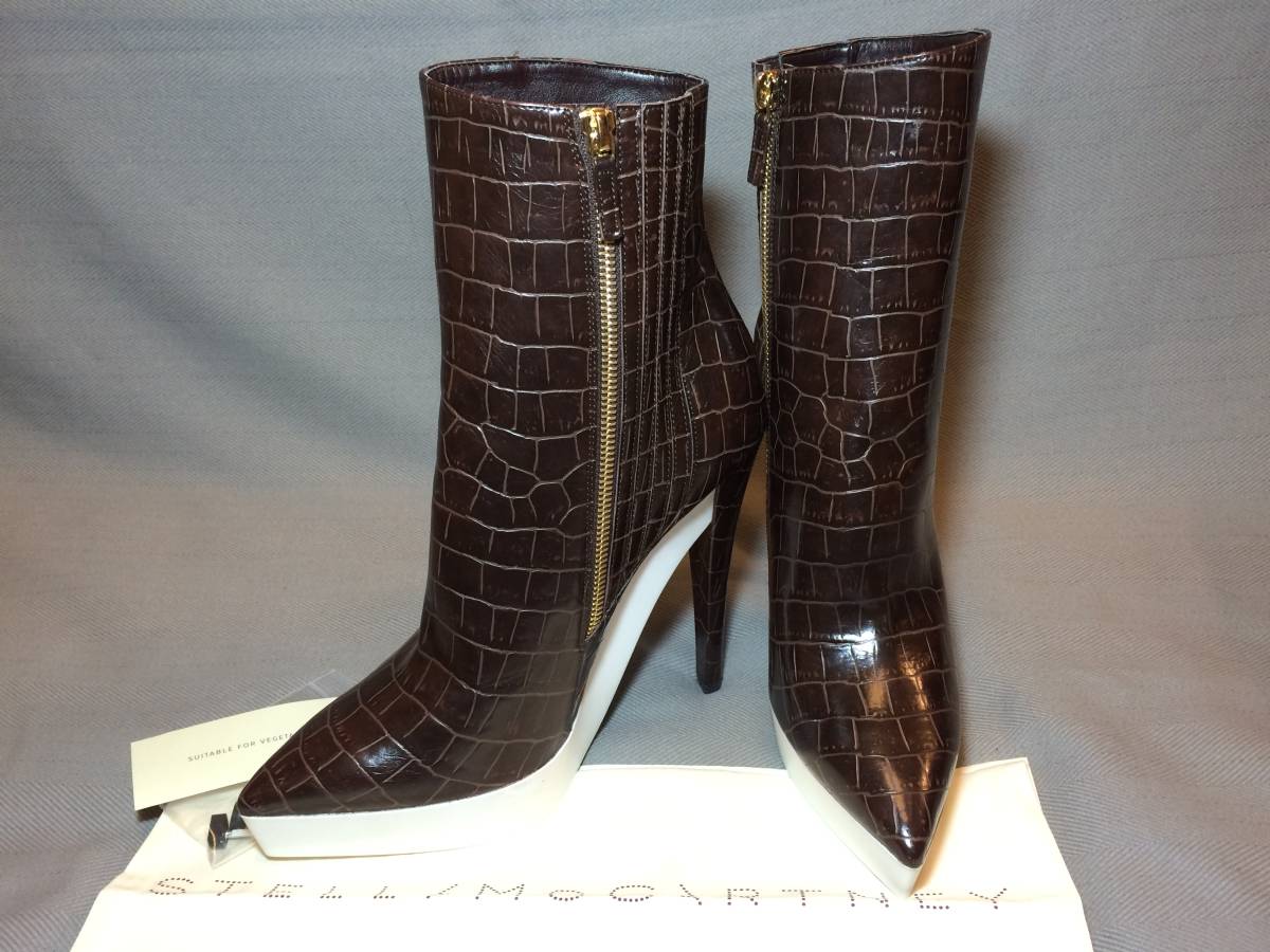 新品 ステラマッカートニー クロコ 型押し ブーツ 39.5 茶 ブラウン 白 ホワイト バイカラー Stella McCartney