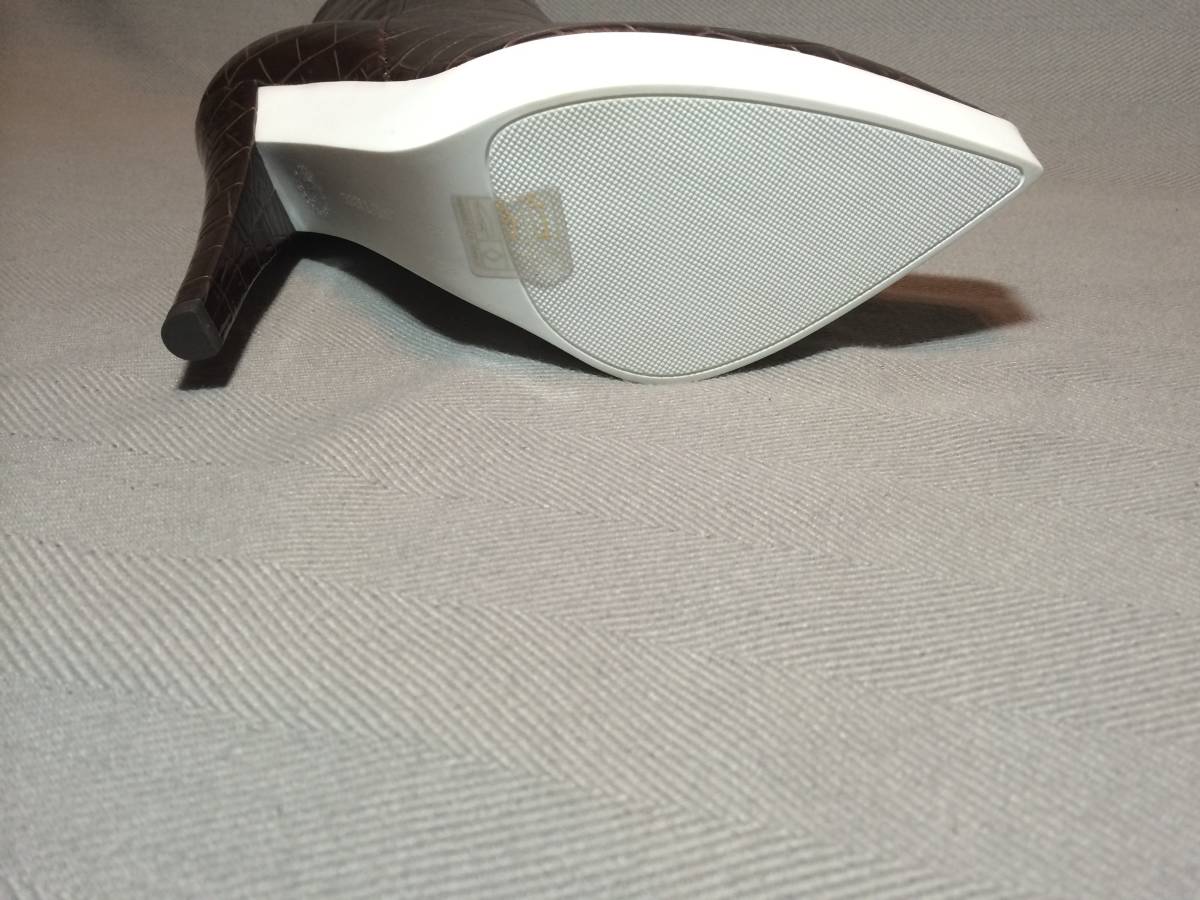 実寸で履き口の筒回り約26.3cm、地面から履き口までの高さ約27cm、幅の1番広い所で約7cm、ヒールは約14cmですが、つま先側ソールが約3cm弱ですので、実質約11cmになります。