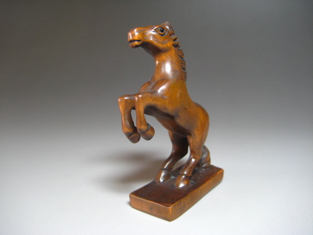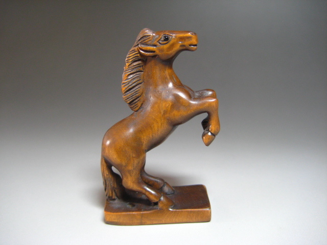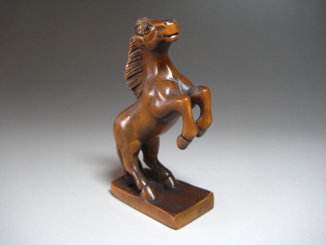 ★吉丸★ 柘植根付B785【馬】 黄楊木彫