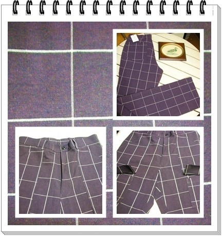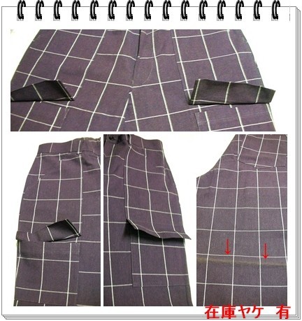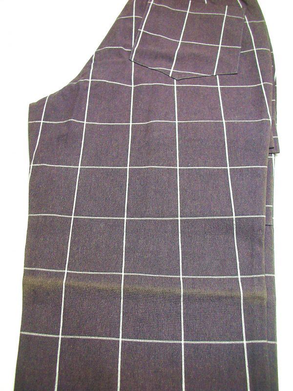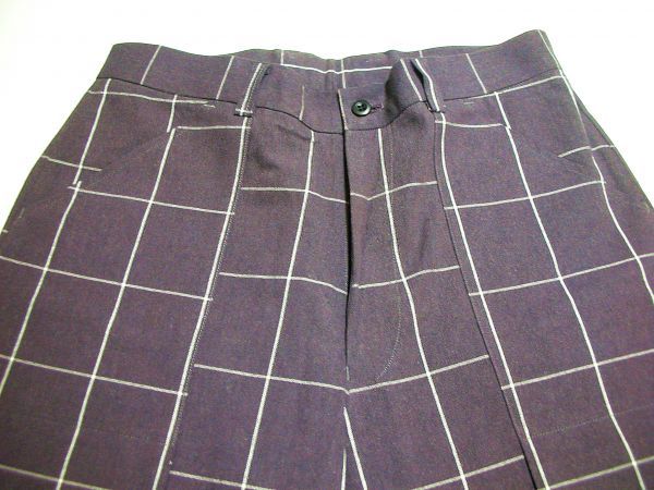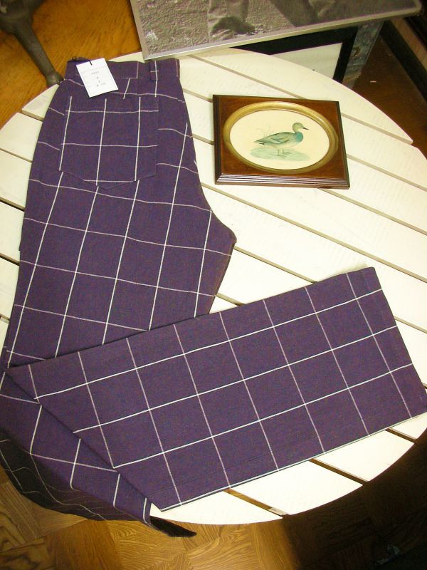ジャンク市☆純綿レアな個性派 バイオレット violetウィンドペーンチェックワイドパンツ-82cm