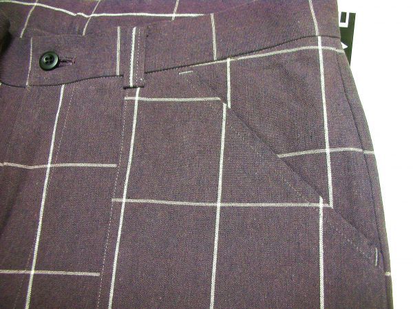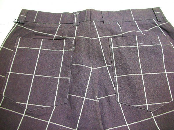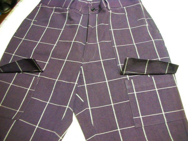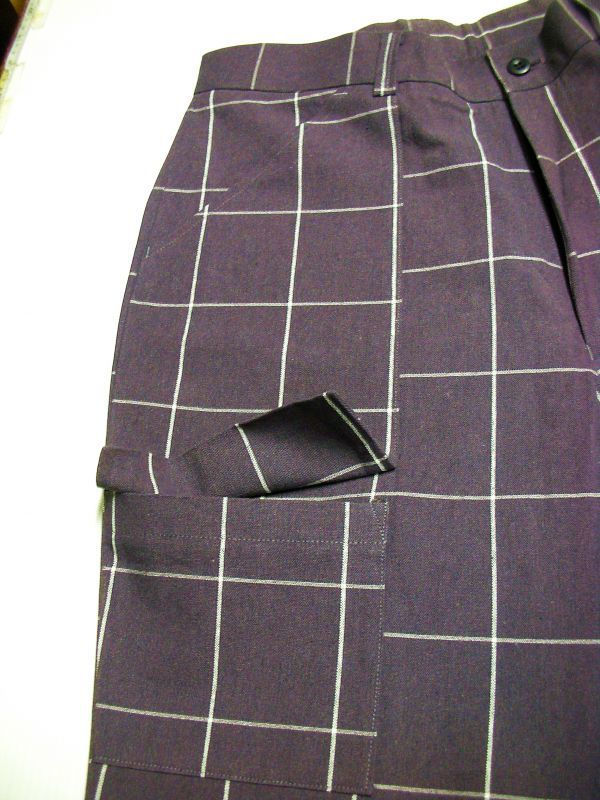 レアな全体に太めのルーズパンツ。個性的ウィンドペーンチェック。タック無し ノータック Lポケット。両サイドにフラップ付きサイドポケット。2つのバックポケットと合わせて 六個のポケット。ループ付き。チョット厚地の年中商品。