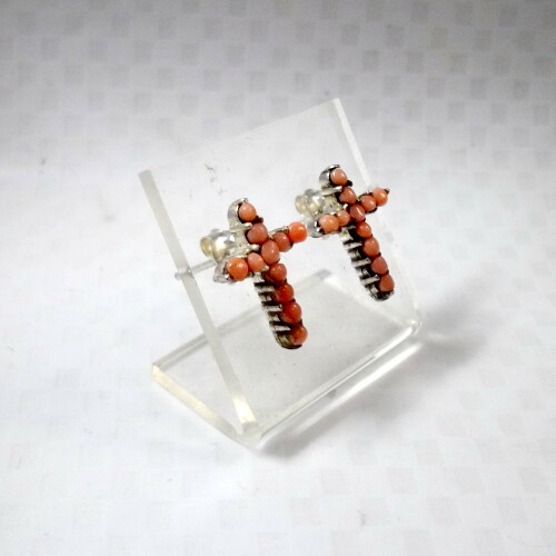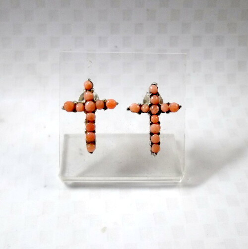 説明 | インカローズ使ったインディアンスタイルの とってもお洒落なクロスデザインの シルバー925製ピアス両耳用の未使用品です。 インカローズは産出量がかなり減ってきて、 パーツとしてもかなり価格高騰してますので、 こちらはお高くなってます。 ほとんど出回ってないデザインタイプの未使用品ですので、 人と違ったお洒落を楽しみたい時にお薦めです。 1mmの小さな石がクロス型にはめ込んであり、 その細かい作業が素晴らしいです。 シルバー925製ですので使えば使うほど 味がでてくると思います。 シルバーフェチにはたまらない作りになってます。 |