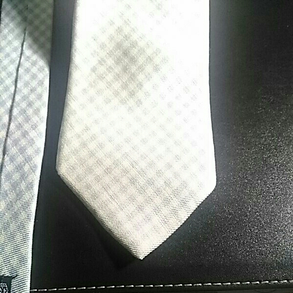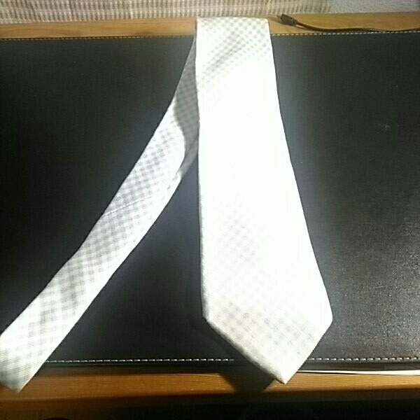 プレゼントで頂きましたがあまり使用機会はございませんでした。写真ではわかりにくいかもしれませんが水色と白のチェックです。淡い色ということもあり、若干色あせと汚れが目立ます。