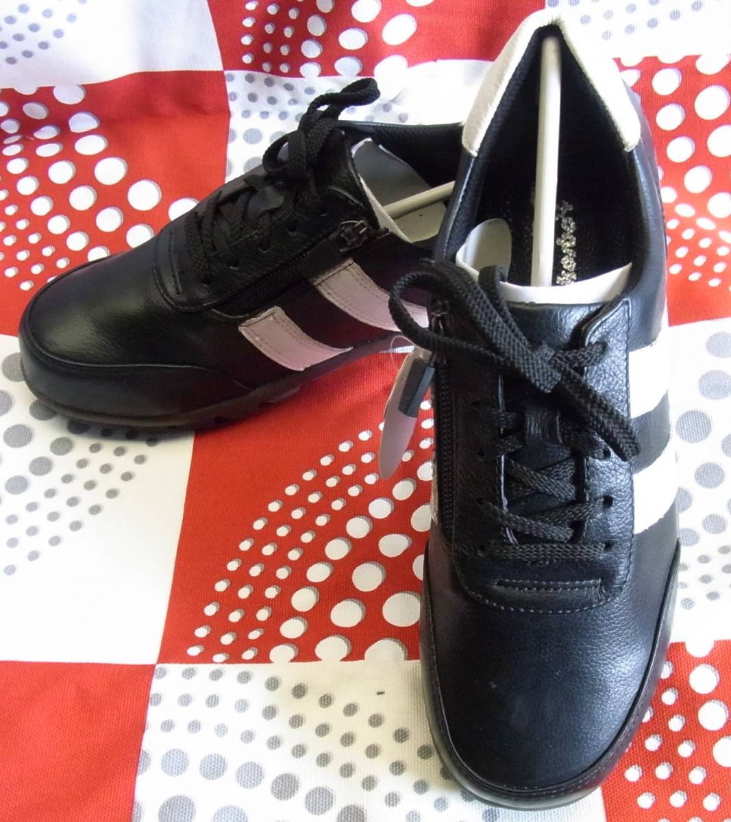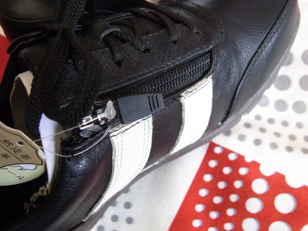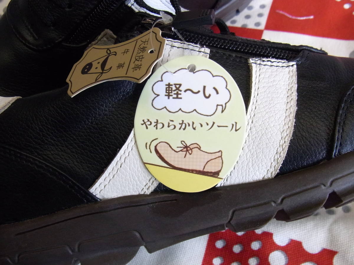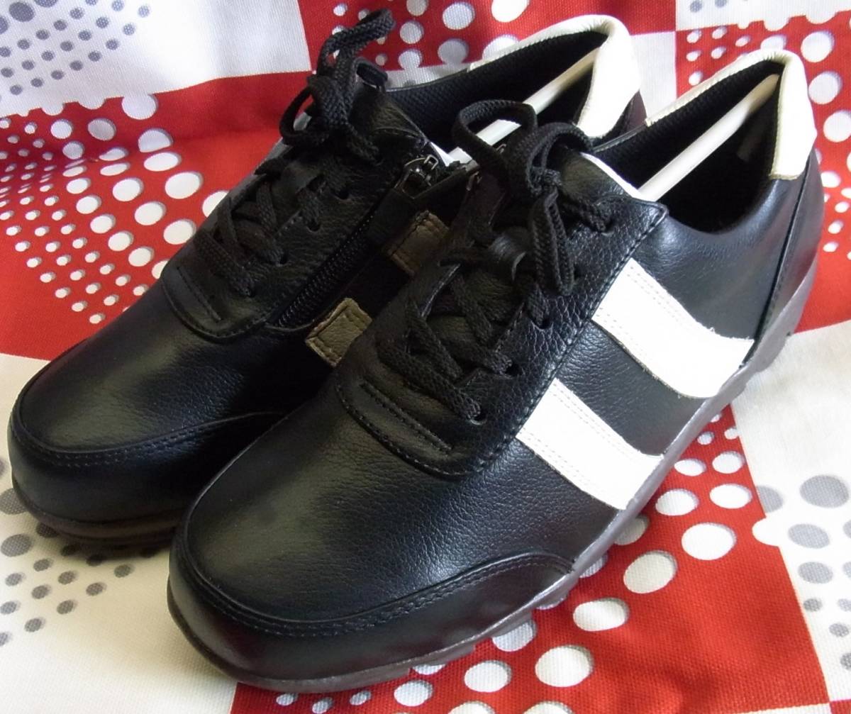 軽量! おしゃれ!履きやすい! korbo 本革 レザー ウォーキングシューズ 黒白 モノトーン サイドファスナーで履きやすいです。 22,5cm
