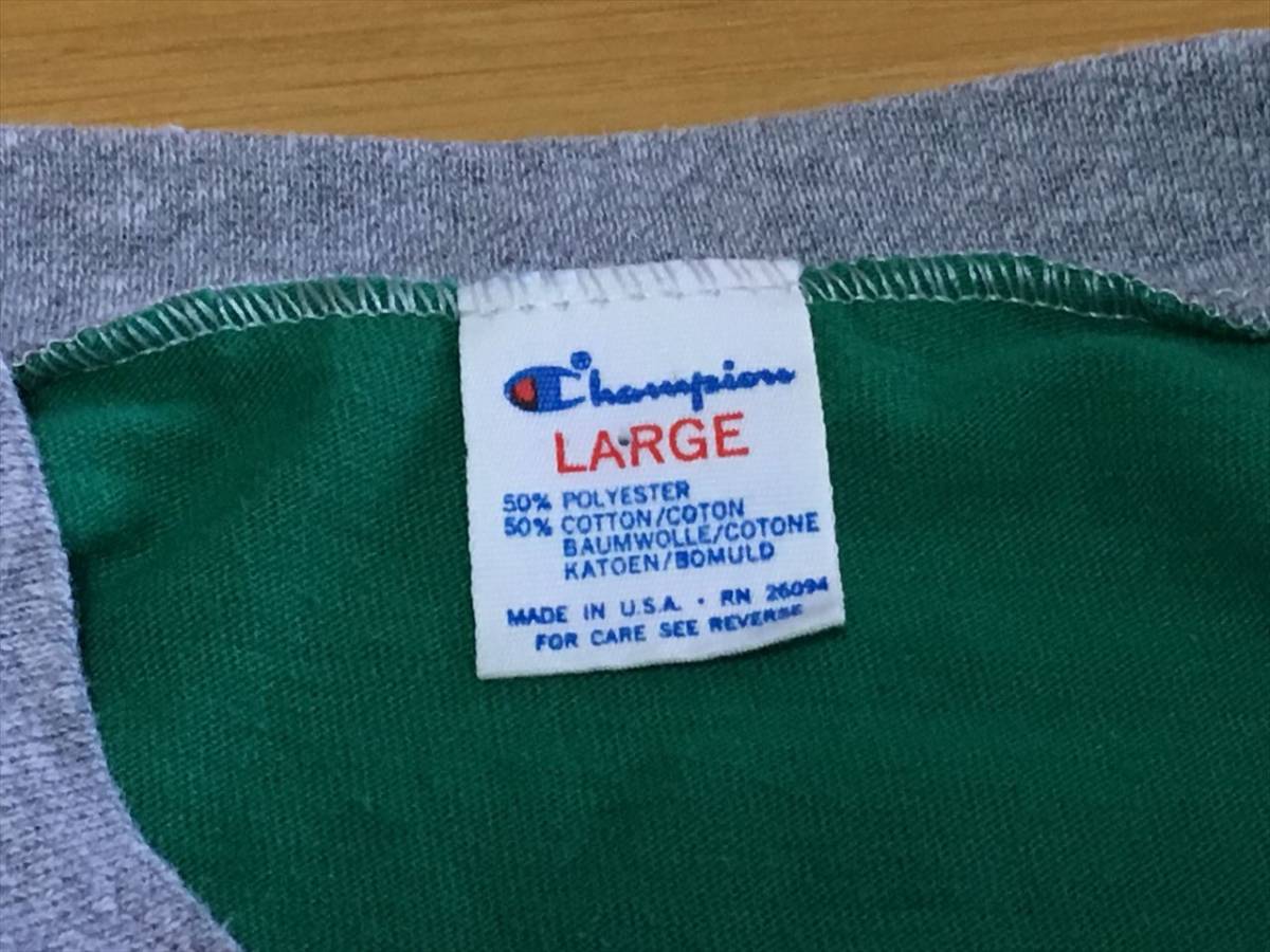 OLD CHAMPION '80s トリコタグ レア! 切り返し Tee 緑x霜降り (L) ビンテージ チャンピオン VINTAGE 送料込み!! MADE IN USA