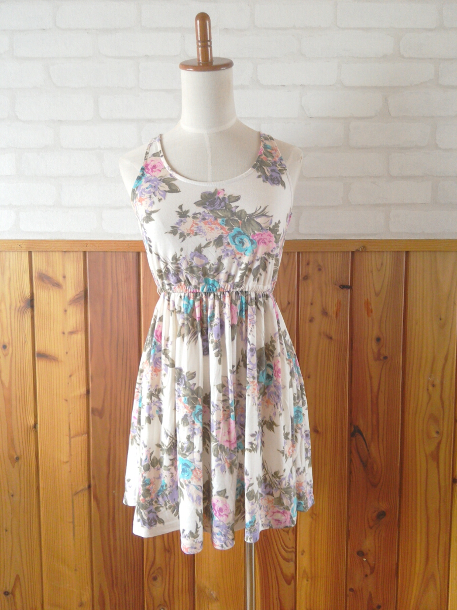 ※こちら裏地あり、ウエストゴムの女性らしい雰囲気のワンピースです。