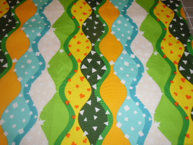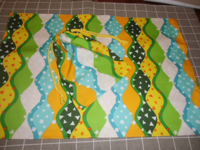 No.106 大判裏付ランチョンマット&巾着 ハンドメイド  40x60 カラフルウエーブ 黄色