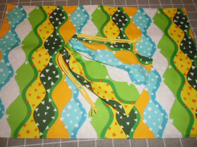 手作りの大判裏付ランチョンマット&巾着袋になります。
