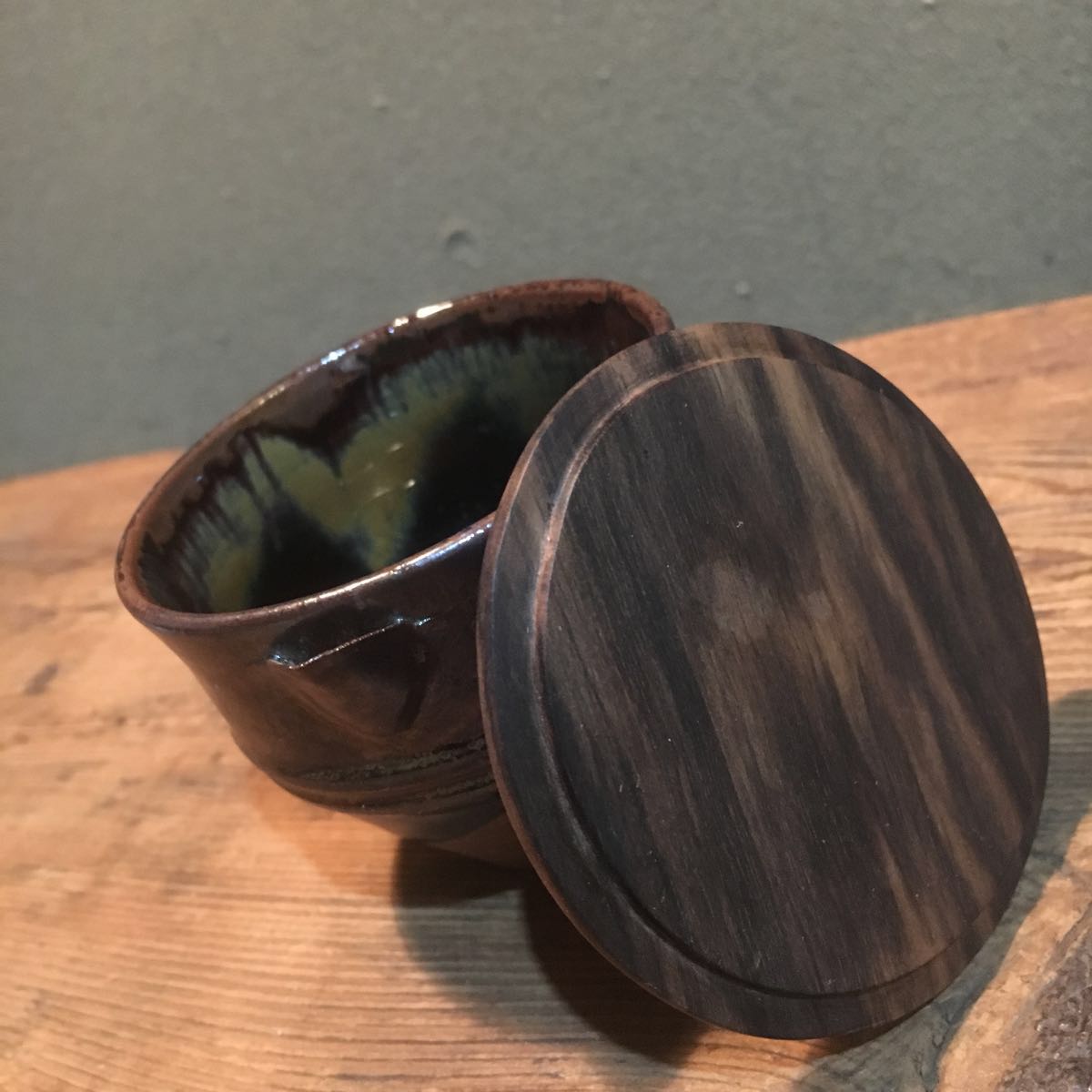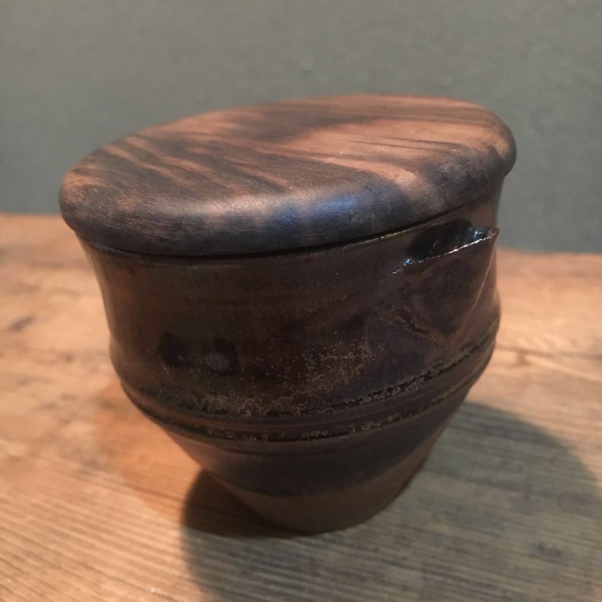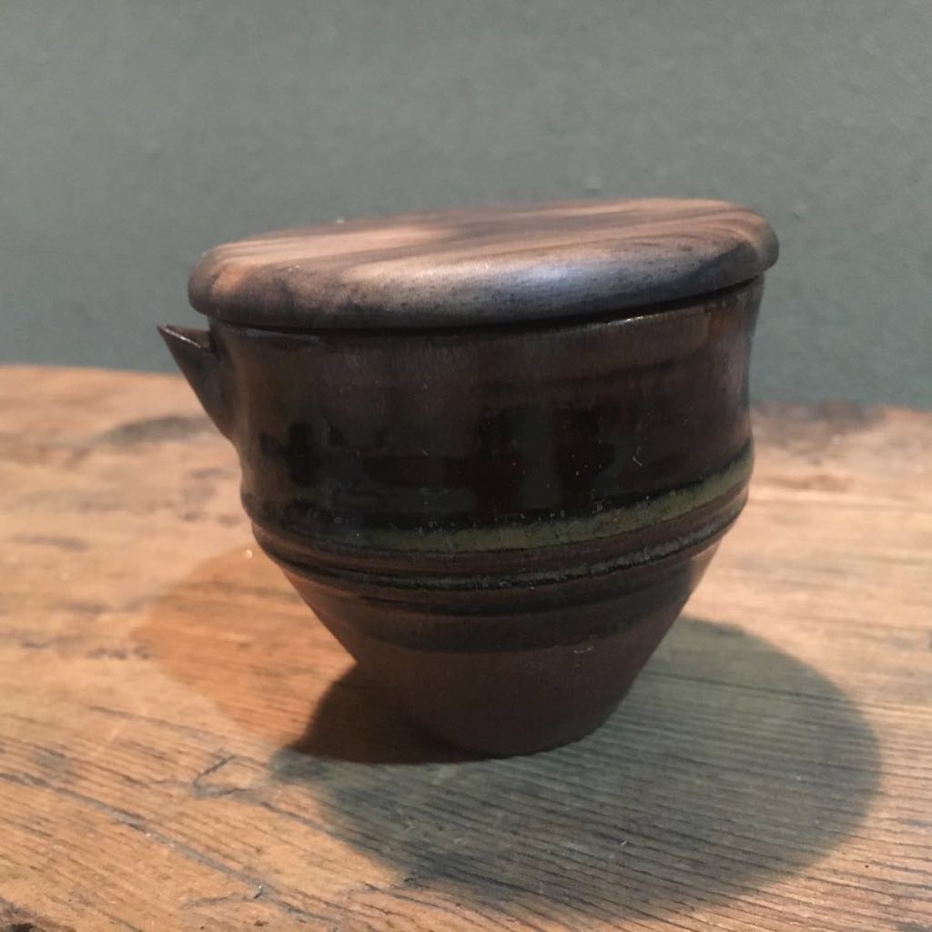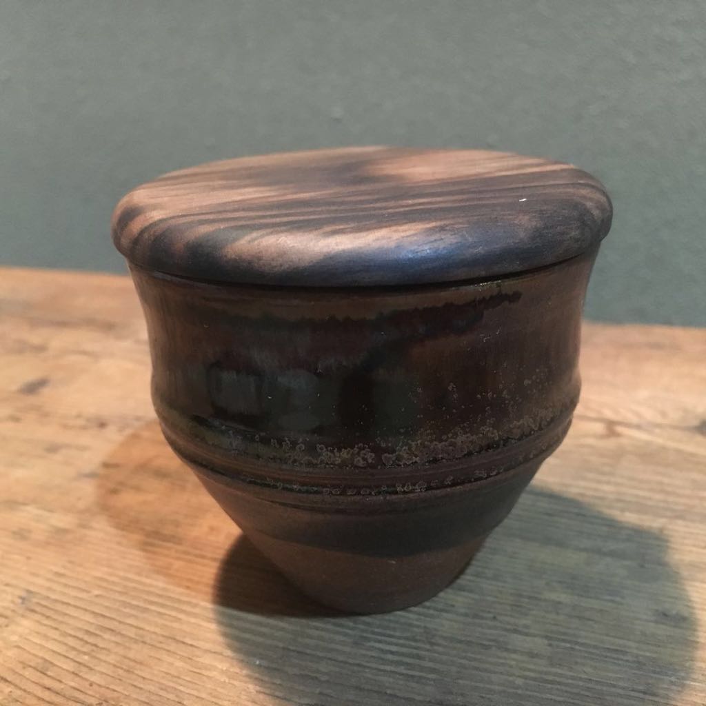 口造はやや沓形となりピタッとはまる黒柿蓋が高取に素晴らしく映えます。