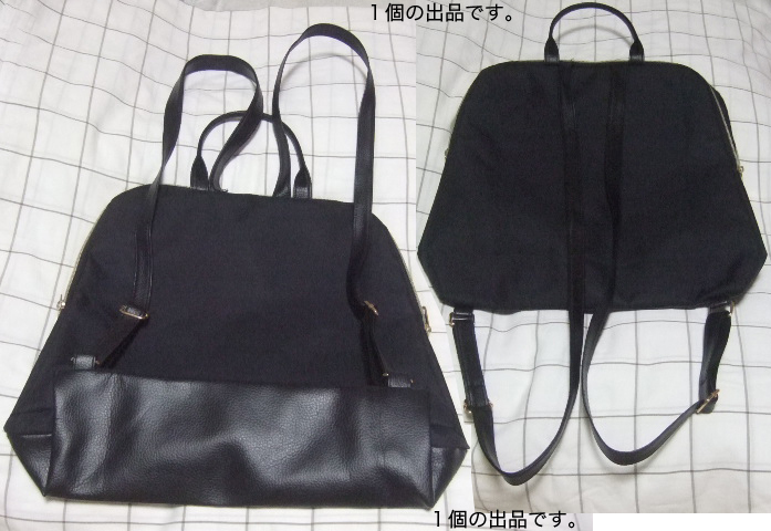 2wayハンドバッグ(黒,薄手,リュック可,横:28 X 縦:30 X 奥行:9)。