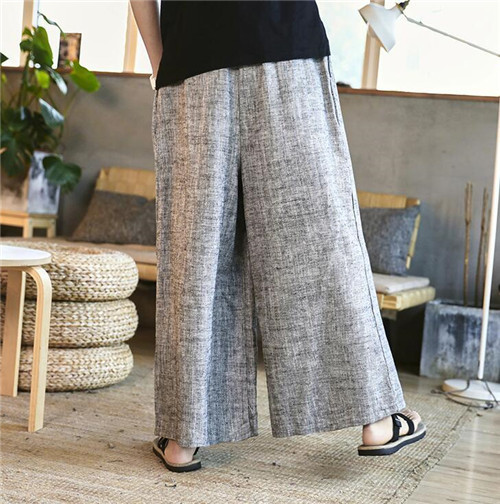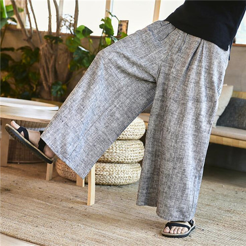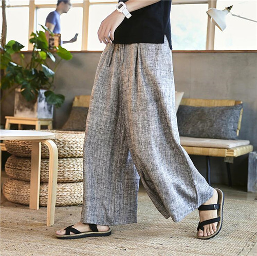 新品★メンズ サルエルパンツ ワイドパンツ ストライプ 綿麻 リネンパンツ ゆったり ハロンパンツ 袴パンツ カジュアル グレー L
