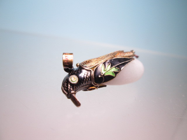 ☆アンティーク・SILVER 白玉飾り 銀線七宝細工鳥のペンダント 5,84g