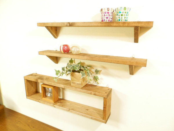 ハンドソーやハンマー、カンナなどの 古典的なツールを主に使用し制作しています。 なのでお届けする家具は 木目の模様が一つ一つすべて異なる一点もの。 塗料は安全を考慮し、 防腐作用のある日本産の製品を使用し、 長期に渡るご使用も想定して制作しています。 壁に取り付ける際にご使用いただく 吊り金具などの直接安全に関わる箇所には、 金具に付属する短いネジは使用せず、 長く頑丈な物に取り替えて棚本体に取り付けております。 商品は組み立て不要の完成品でお届けします。 |