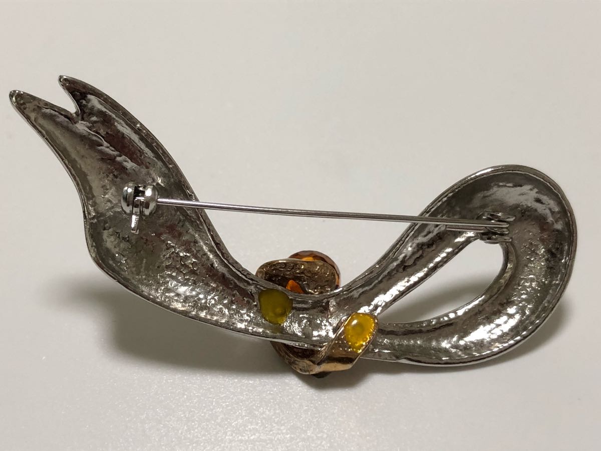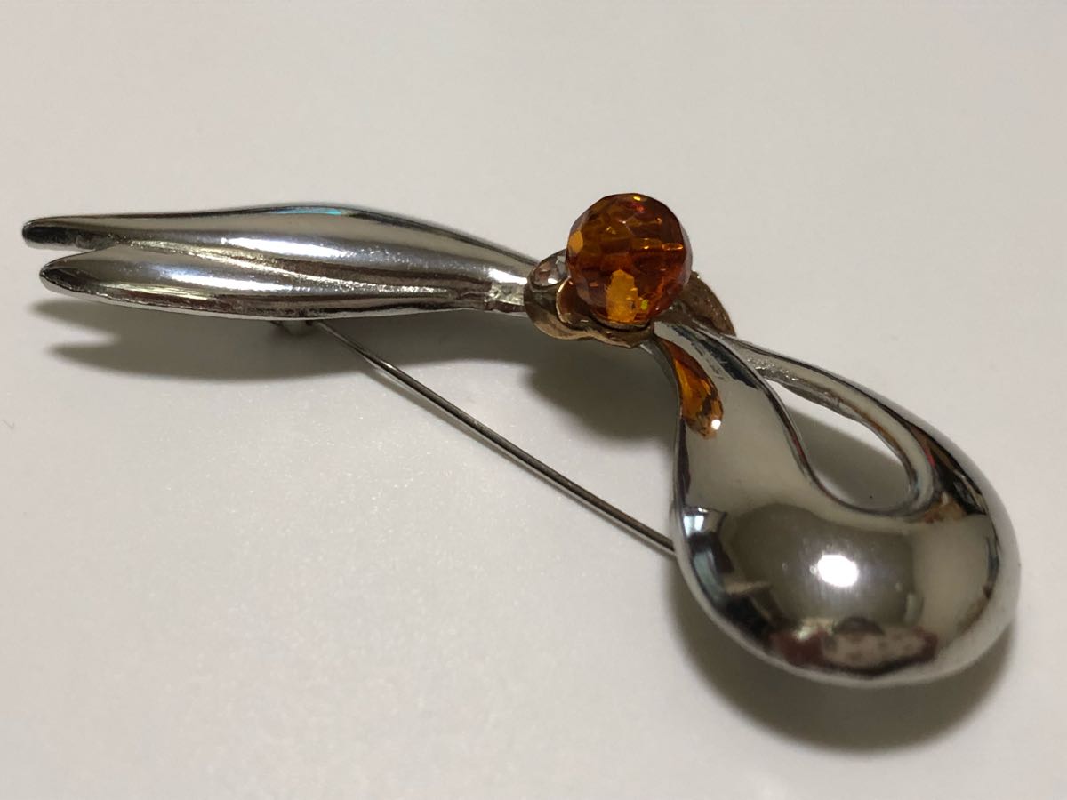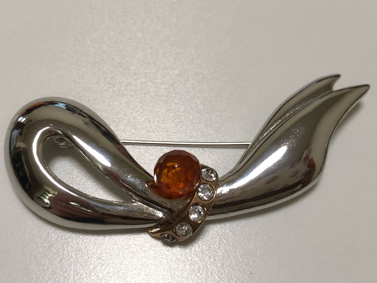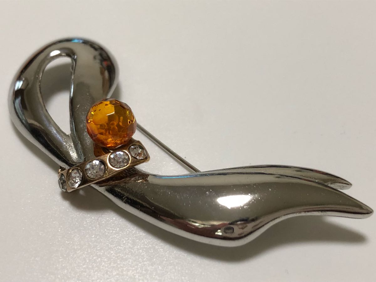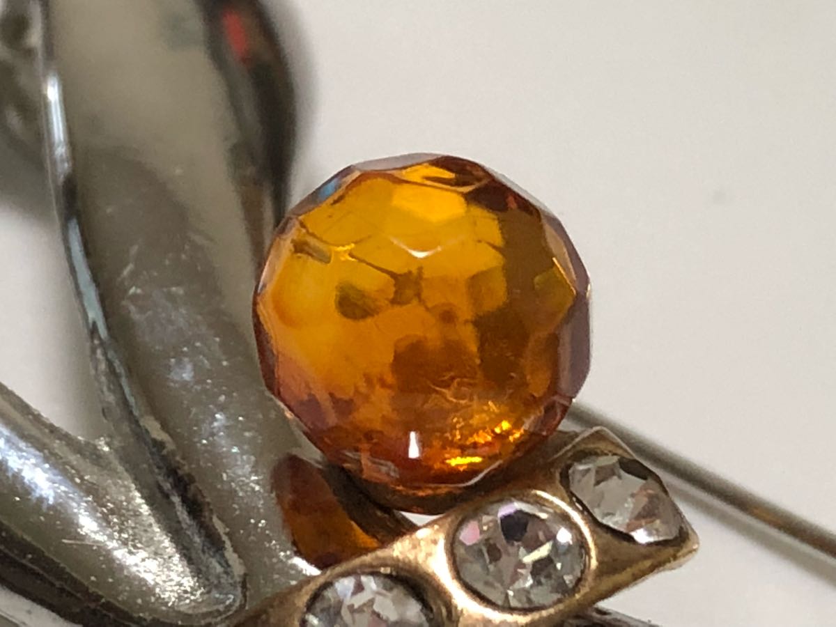 本琥珀、ジルコニアを使用した、デザインブローチです。