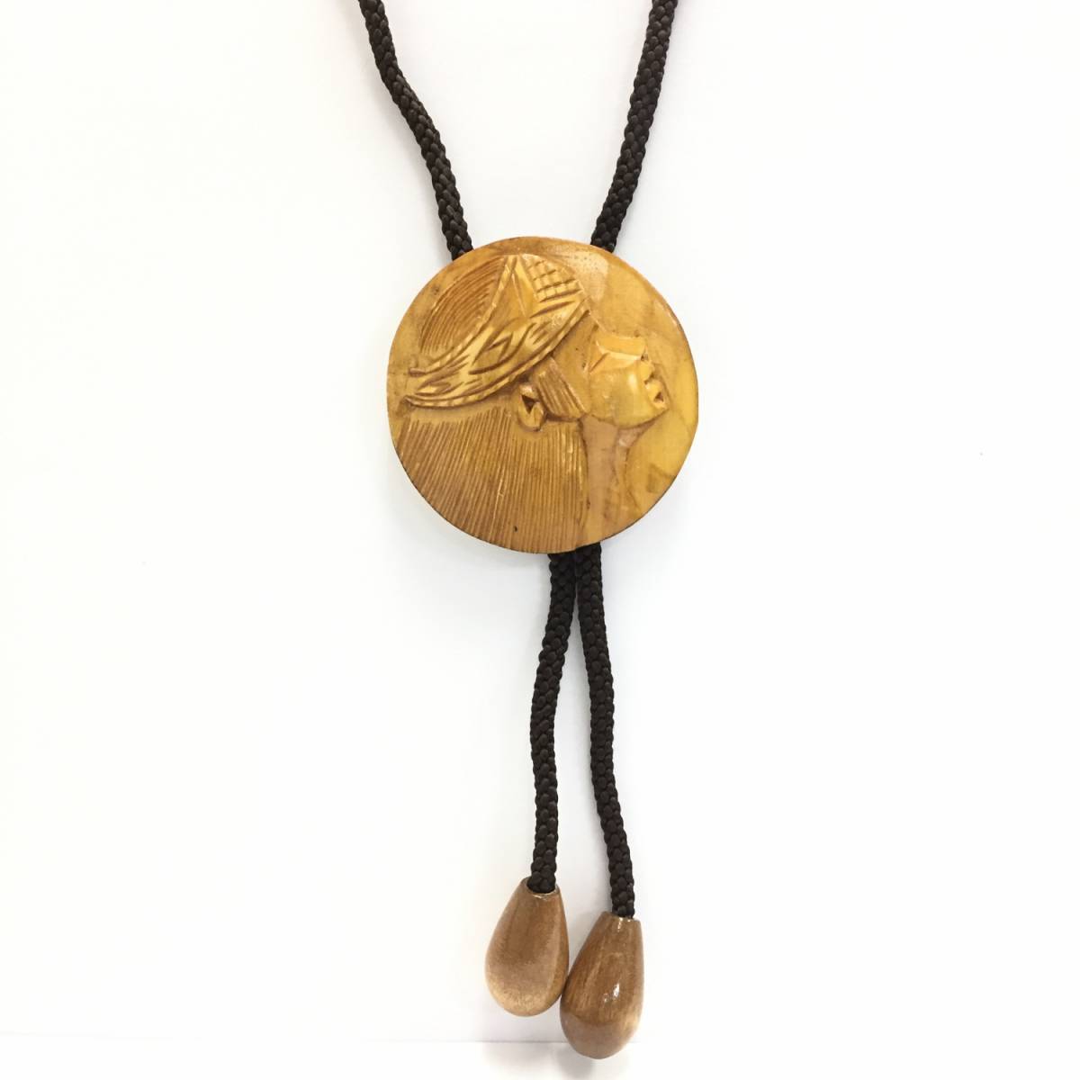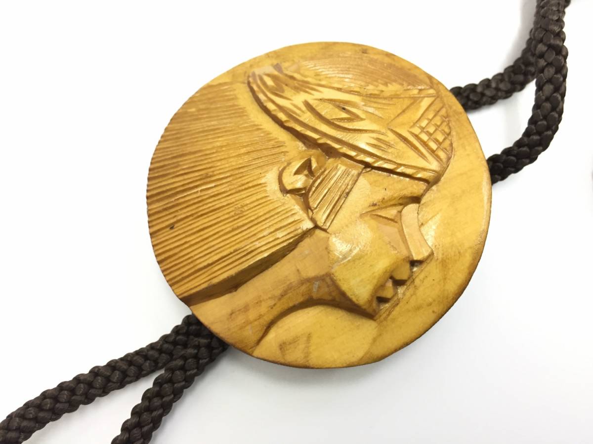 【ループタイ】約108cm ボロタイ 北海道の木彫りのような アイヌのような 木製 アンティーク レトロ no2