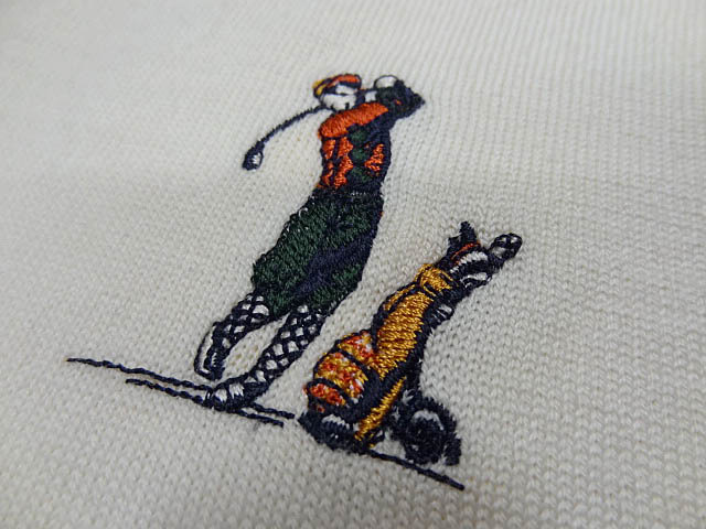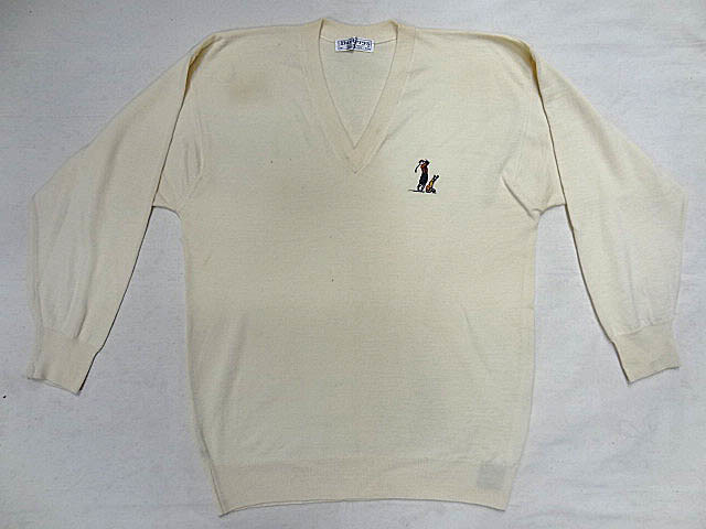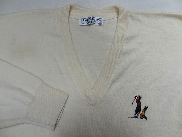 BURBERRYS バーバリー 英国 イギリス製 ゴルフ 刺繍 Vネック 白 メリノウール ニット セーター ホワイト スポーツ UK イングランド 希少 色