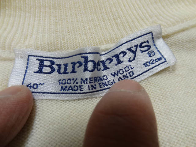 アイテム詳細:「バーバリー」イギリス製ホワイトウールVネックニット