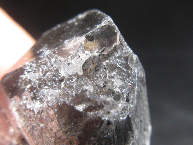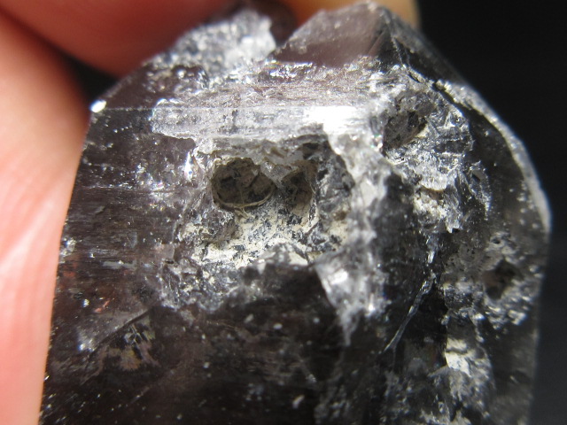 ・穴やクラックが見られるものの、黒透明の面白い水晶です。