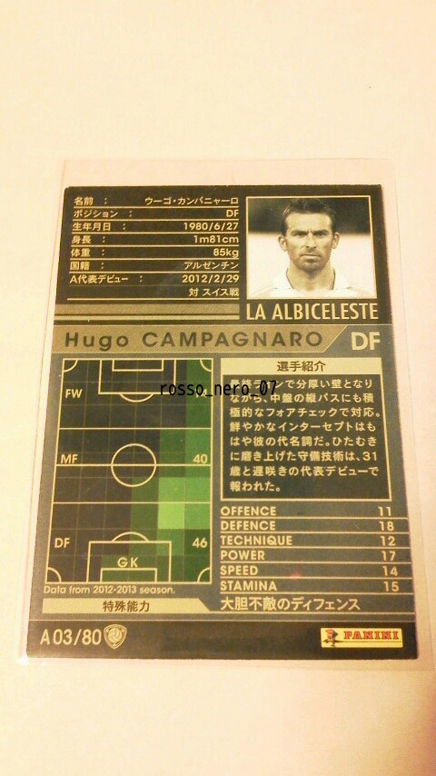 ☆WCCF2012-2013☆12-13Ver.2.0☆A03☆黒☆ウーゴ・カンパニャーロ☆アルゼンチン代表☆Hugo Campagnaro☆La Albicelestes☆