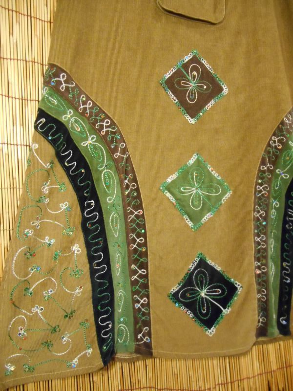 ④一点物★コーデュロイ★ヒッピー調ステッチ★ロングスカート