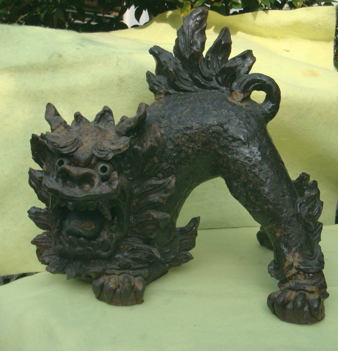■ 大型 超硬焼き物シーサー です。指で叩くと金属音がします。昔石垣島で入手したシーサーです。造り、迫力、姿等他のものに比べ群を抜いています。室内ケース保管のため、極上品です。シーサーをお探しの方にお譲りします。