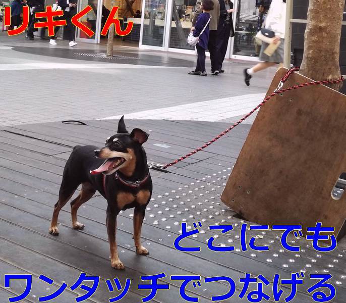 途中2箇所にリングを装着してお出かけ先のポールなどにつなぐのも簡単!