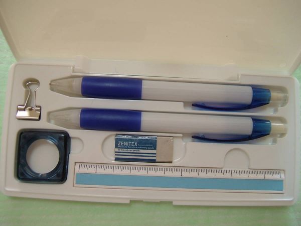 ボールペン、シャーペン、消しゴム、定規、ルーペ、クリップ セットケース入り 文房具セット