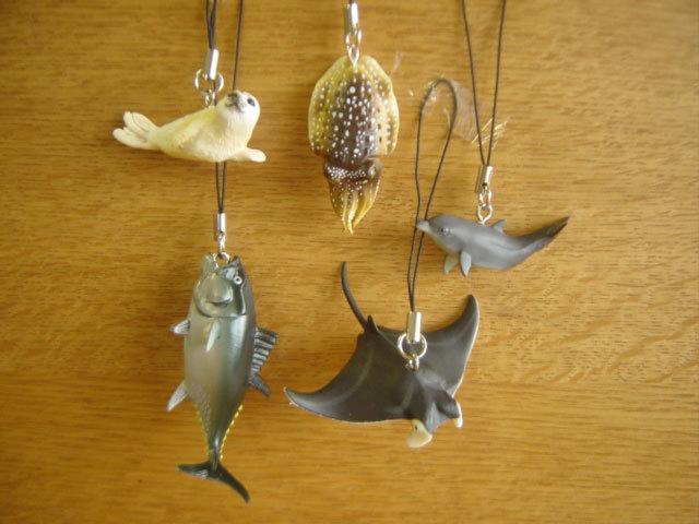 1.バンドウイルカ 2.ゴマフアザラシ(赤ちゃん) 3.オニイトマキエイ 4.コブシメ 5.クロマグロ ◇彩色のクオリティはそのままに!ストラップ登場! |