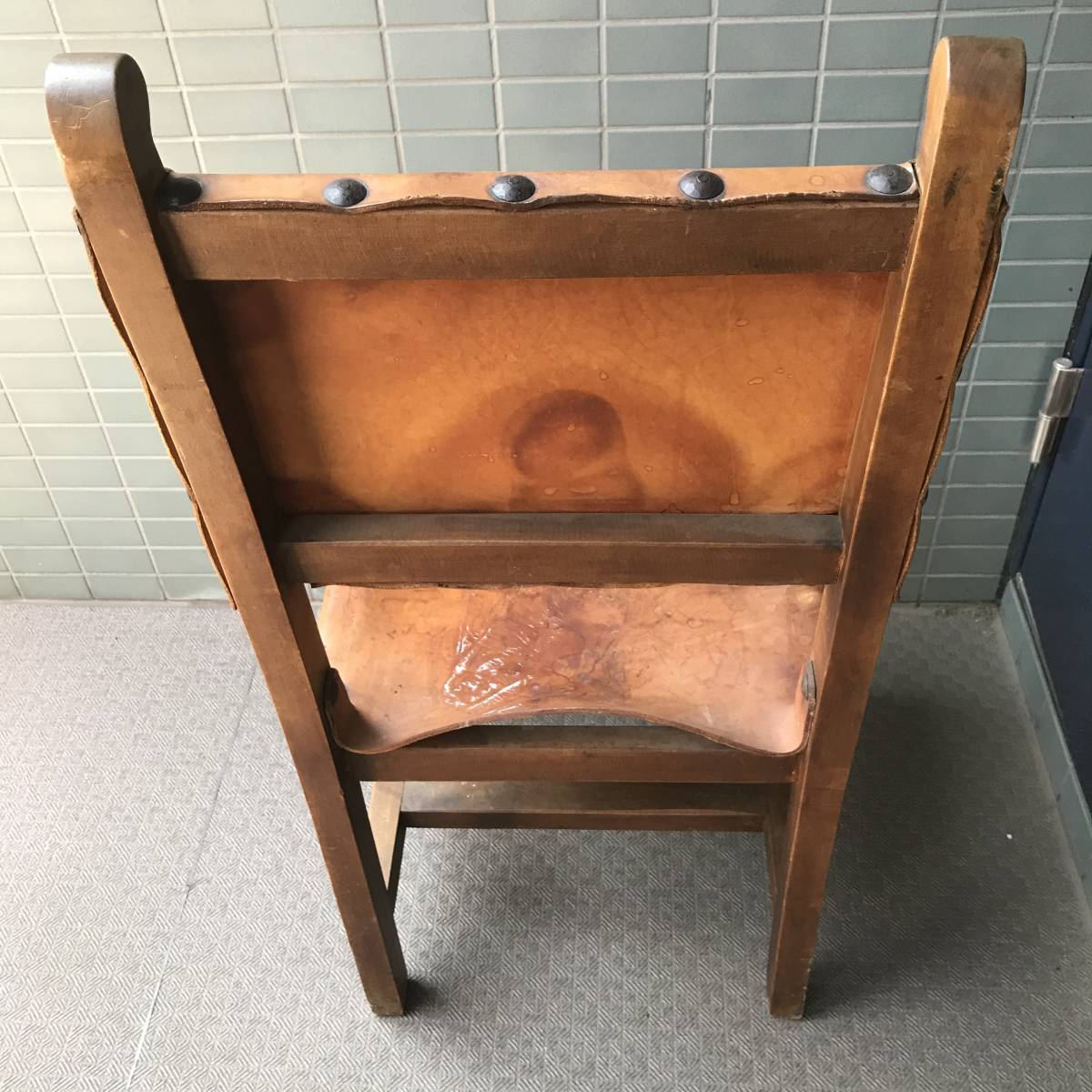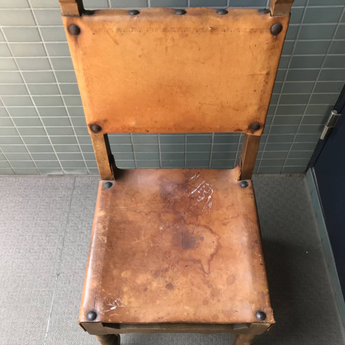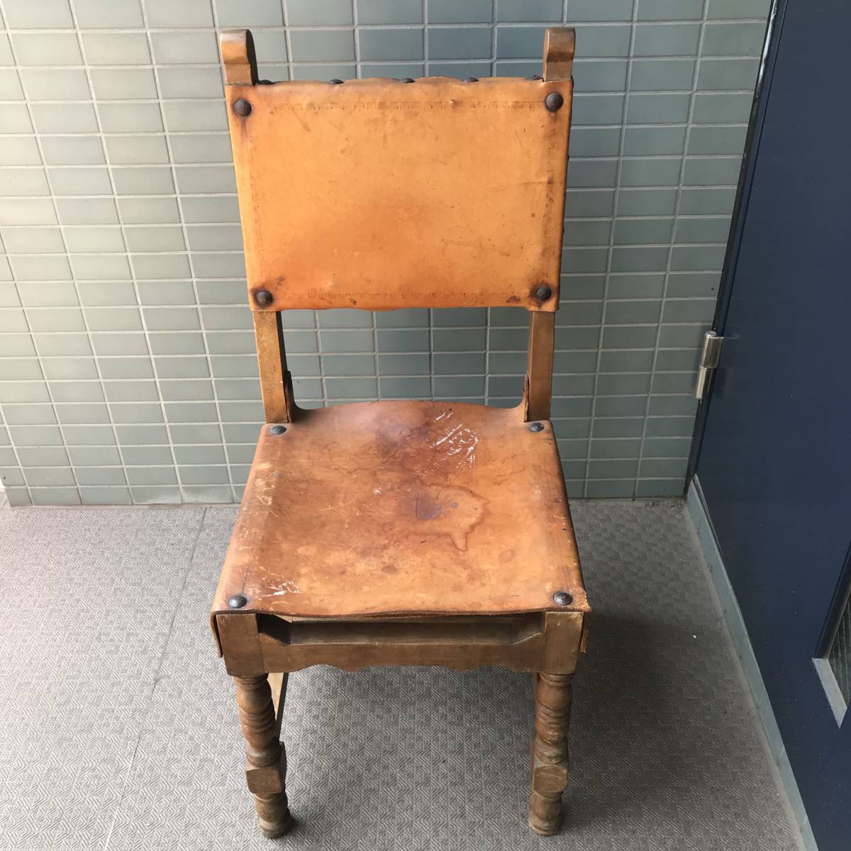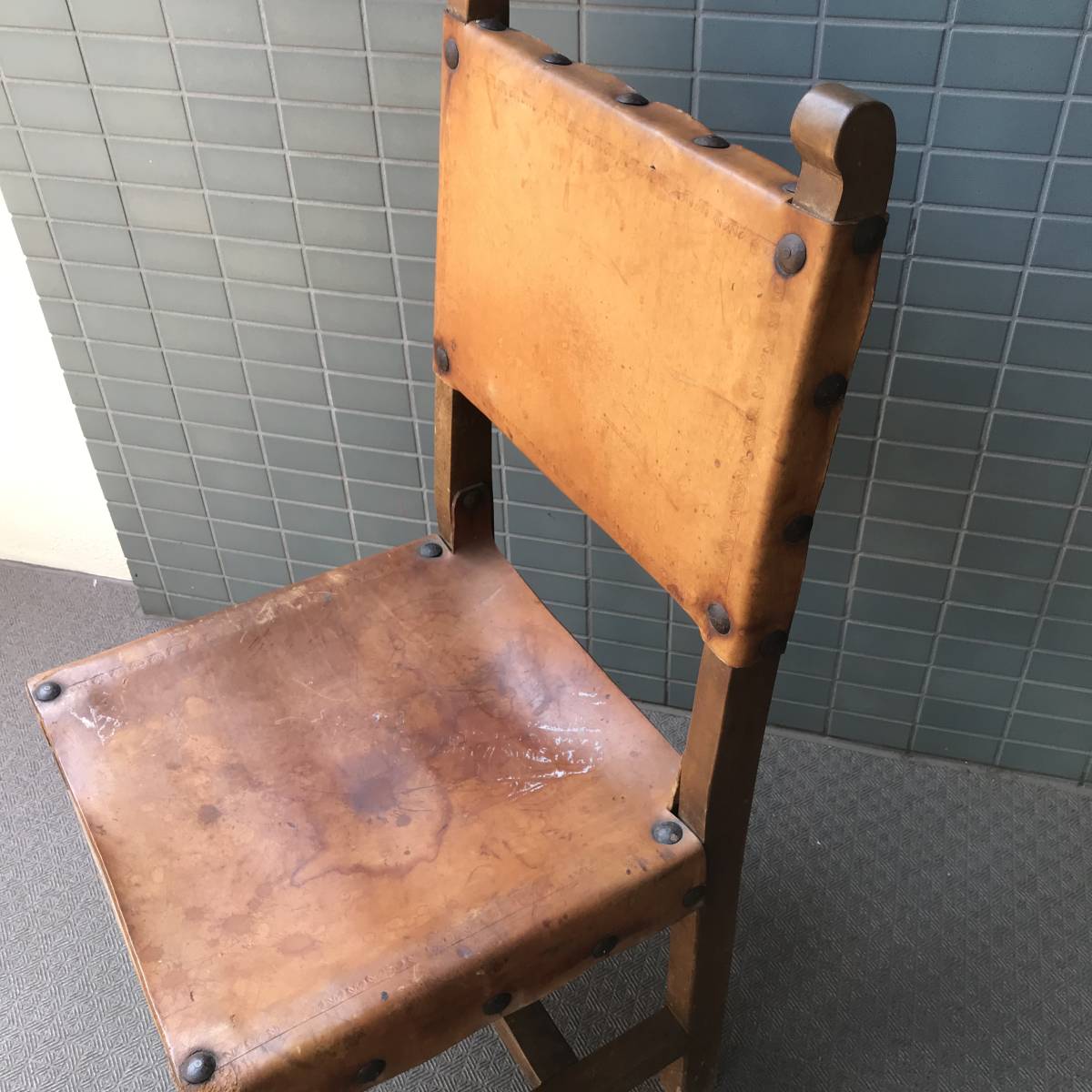 アメリカのアンティークショップで購入しましたレザーチェアです。  年代物のアメリカ製です。 分厚いレザーが座面と背もたれに貼られており、大きなビスで留められています。