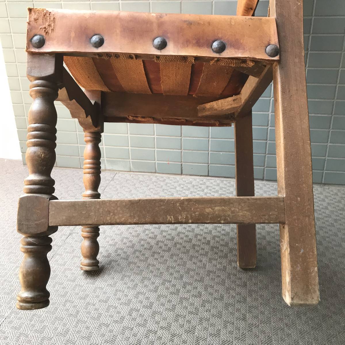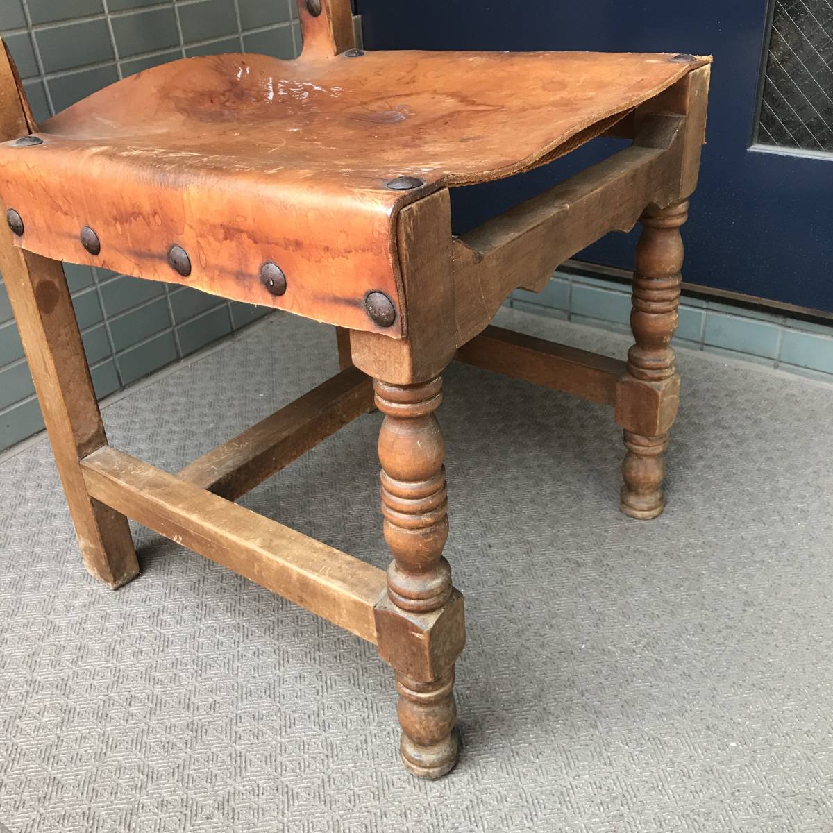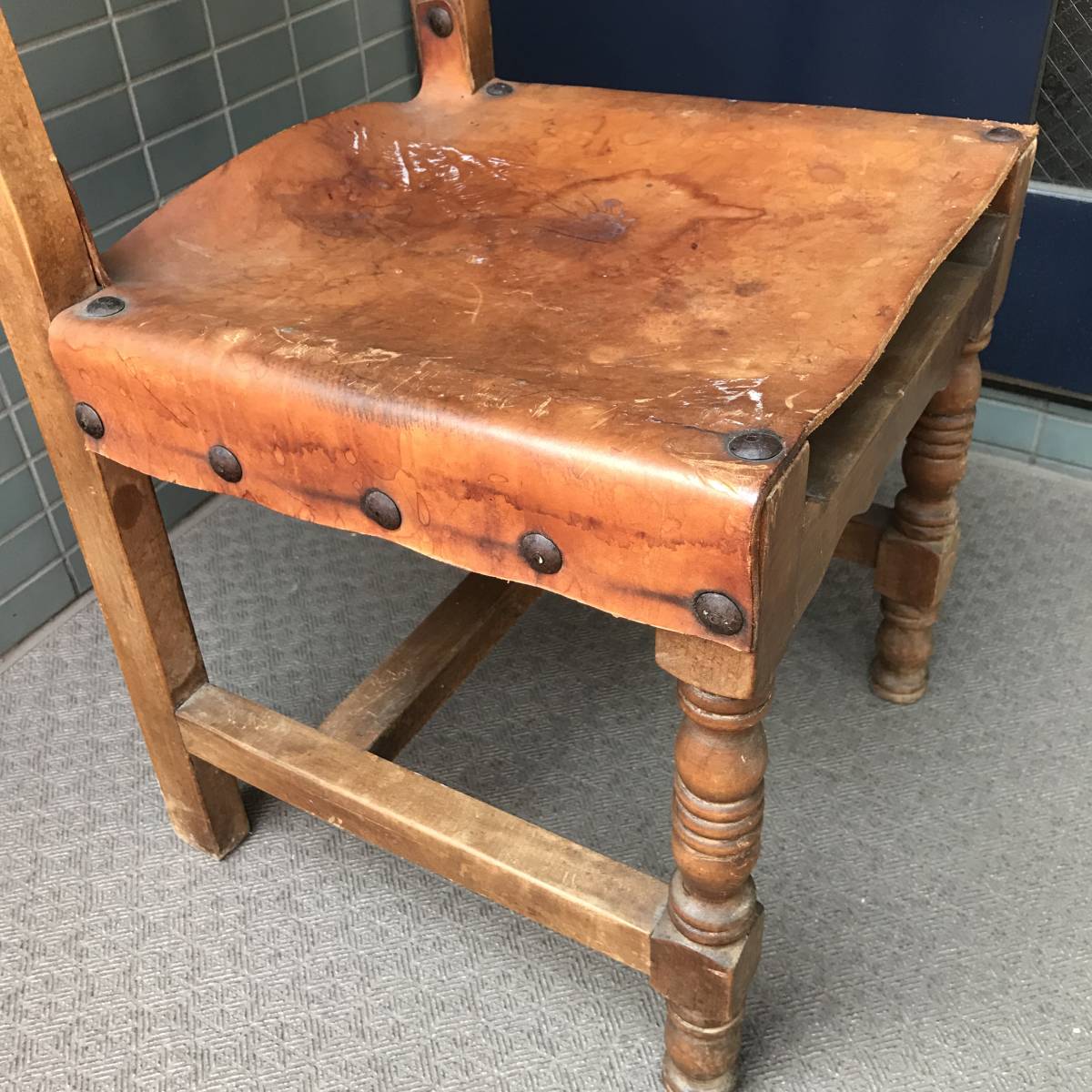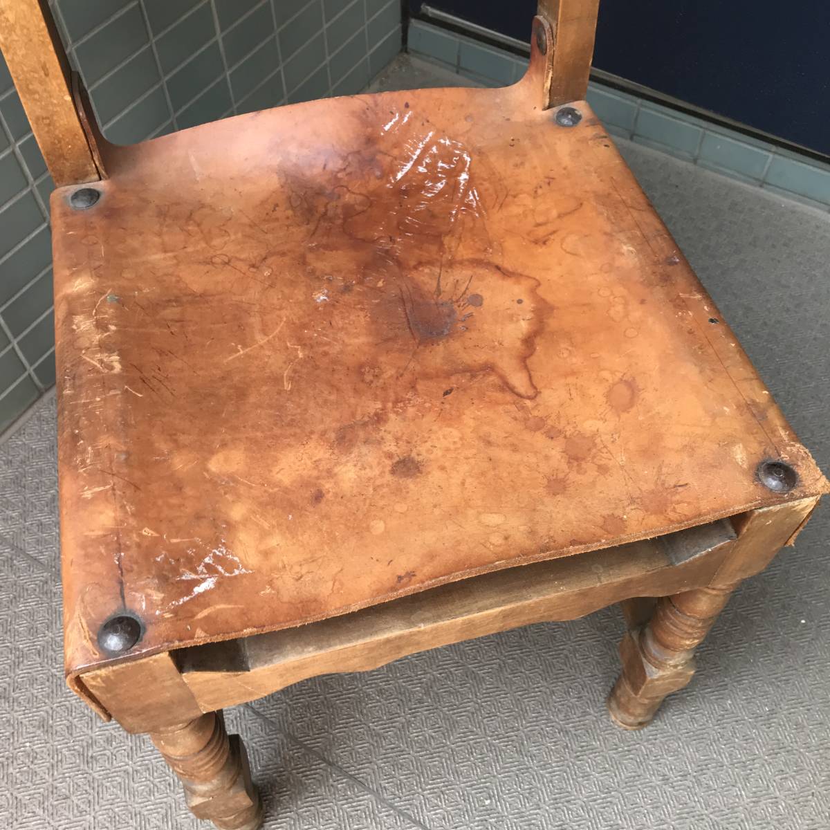 アメリカのアンティークショップで購入しましたレザーチェアです。  年代物のアメリカ製です。 分厚いレザーが座面と背もたれに貼られており、大きなビスで留められています。