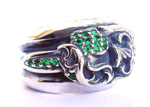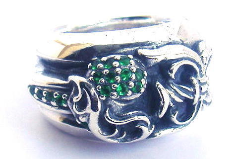 ★◆☆ シルバー925 ハートダガーリング with pave エメラルド 17.5号 ★ ダガーハートリング 新品 未使用 ハート ダガー リング