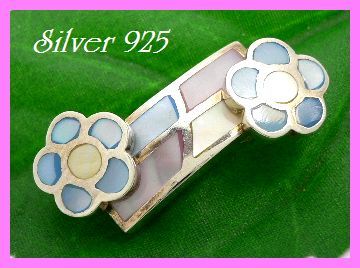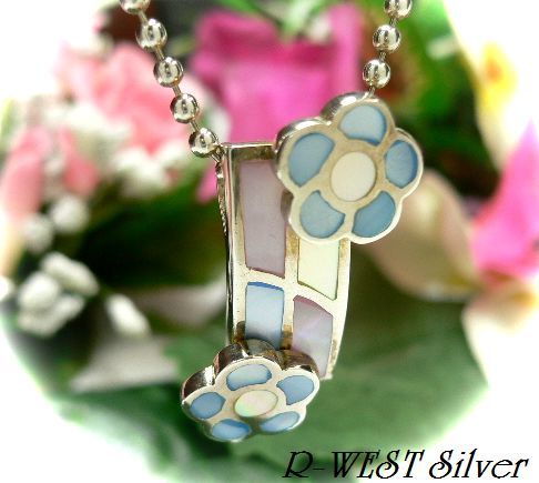 シルバー925銀のシェル貝殻入り ペンダントtypeX/フラワー パステルカラー
