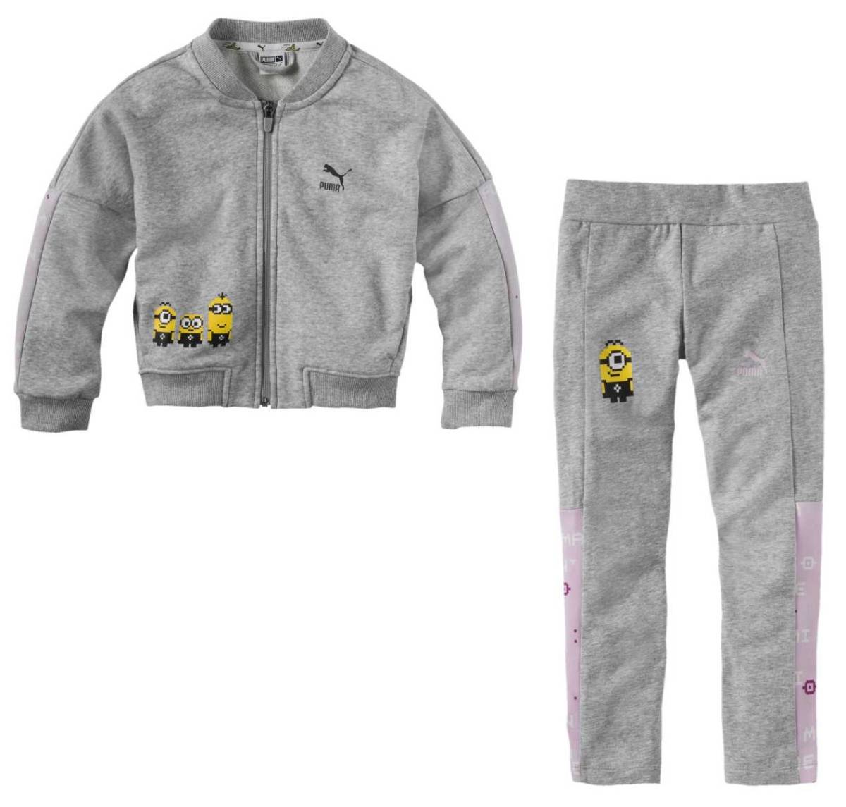 プーマ ミニオンズ コラボ キッズ フルジップボンバージャケット&タイツ 116 グレー Minions 女児用 スウェット レギンス 上下セット
