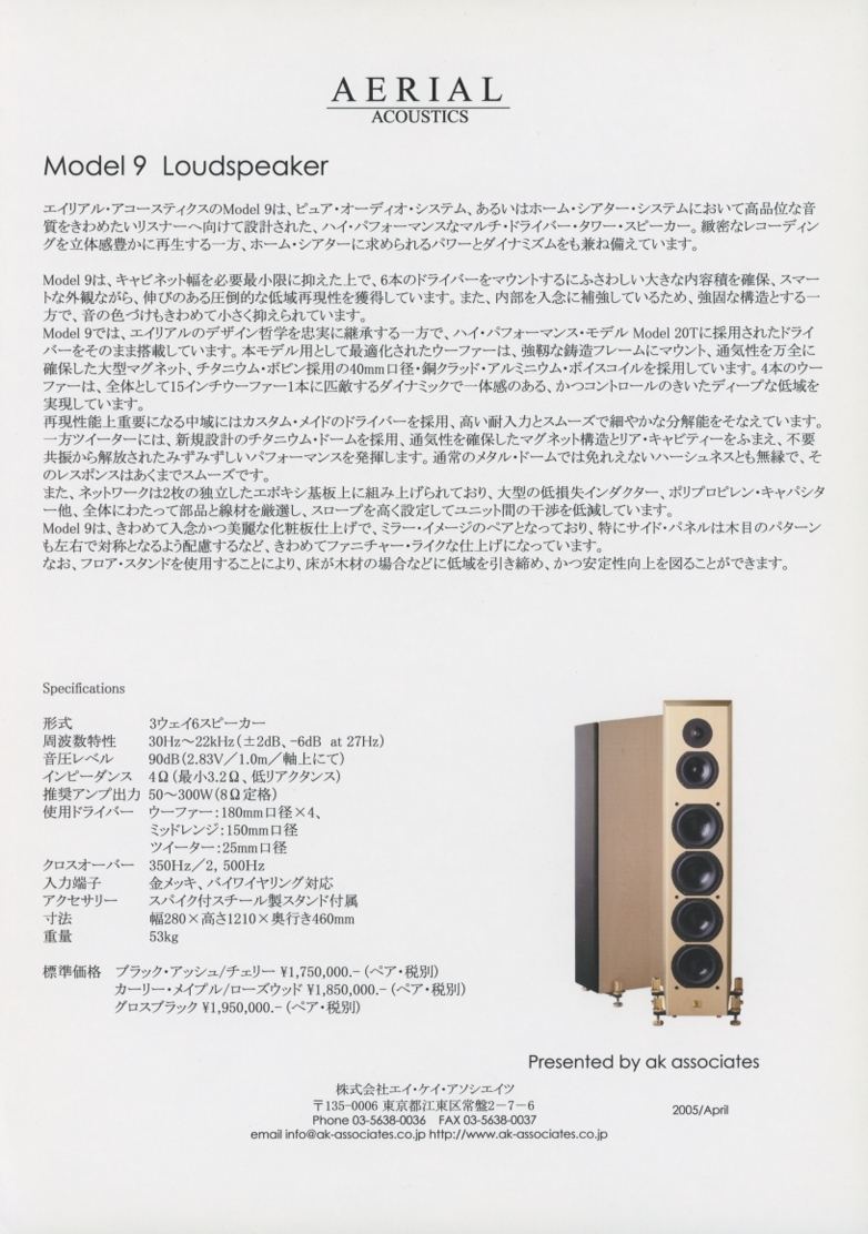 AERIAL Acoustics Model9のカタログ アエリアルアコースティクス 管3399