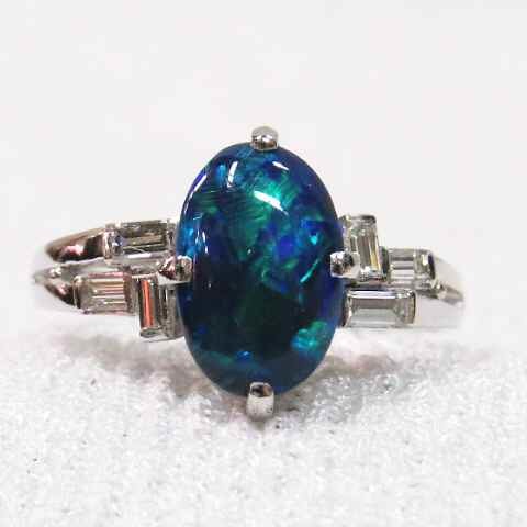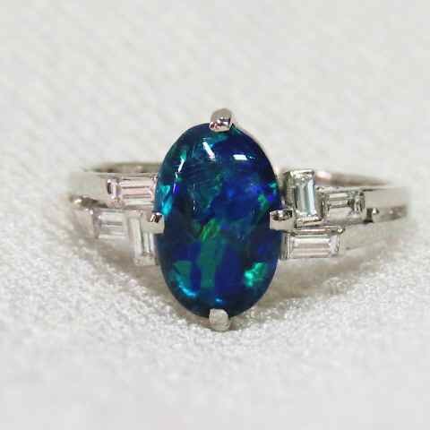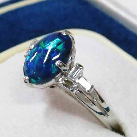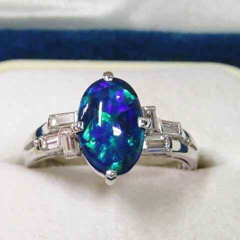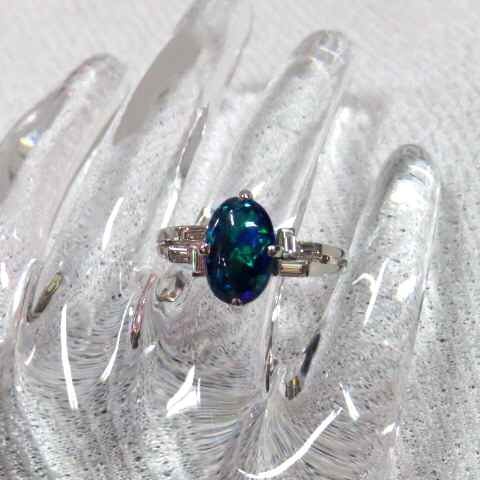 美しいブラックオパールの遊色効果(緑・青中心)がはっきりとしていて、艶のあるグッドカラーです(画像参照)。