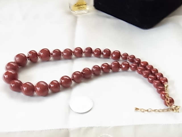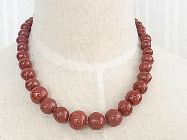 ヴィンテージ あずき色 ワインレッドカラー 大中小のグラデーションの大きさ 品質不明 顔色が明るくなる華やかなネックレス◎◎