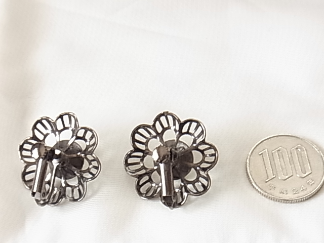 ヴィンテージ 大粒のラインストーンが輝く カッティングが綺麗 お花 フラワーデザインのイヤリング★