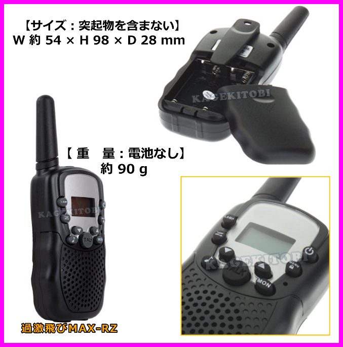 | 商品説明 | 高いだけで飛ばないトランシーバーとは飛距離が違う♪ 信頼の過激飛びMAX:RZトランシーバー 特定小電力 20CH対応 多機能・高性能 VOX回路ハンズフリー交信可能&混信を防ぐ99CTCSSトーン付き イヤホンマイク使用OK♪1台組 新品 国内倉庫より発送 ●免許不要 特定小電力トランシーバーとチャンネルを合わすだけで 交信可能 ケンウッド アルインコ アイコム その他メーカーの シンプレックス20CHに対応 従来の9CH・11CH機ともチャンネルを合わすだけで交信可能で レジャーは勿論 業務用としても幅広くお使いになれます ●混信とノイズを抑える 99CTCSS、サブコード装備 他のグループが同じチャンネルで交信していると 混信し ノイズも入りうるさくなりますが グループ番号を1~99の中から選んで設定しておけば 他のグループと混信することなく、ノイズを抑えて快適な通話が 楽しめます ●話すと自動的に送信、黙ると自動的に受信 ハンズフリー交信が出来るVOX回路を内蔵 ●自然に手に持った角度で画面が見やすい 様に液晶表示を調整してありますので ごく自然に画面が見やすく 扱いやすいです ●呼び出し音は10種類選択可能 ●キーロック機能 ●チャンネルスキャン機能 ●送信終了時を伝えるロジャービーブ音 ●夜間の操作もスムーズな 視認性の高いバックライト付き大型LCDディスプレイ採用 ●弱い信号を受信するためのモニター機能 ●キー操作時のビープ音の有/無を選択可能 ●誤動作を未然に防ぐキーロック機能 ●約90gの軽量&コンパクトでポケットも軽くかさばりません ●混信とノイズを抑える 99CTCSS、サブコード装備 ●VOX回路内蔵の為、ハンズフリー交信が可能です ●大型スピーカーで聞き取りやすいです ●暗闇でも便利な明るい LEDライトがついております ●イヤホンマイクが使用可能です(別売り) ●99CTCSSは 同メーカーの製品とご使用下さい 他メーカーの製品と適合しない場合がございます ●過激飛びMAX様よりRZバージョンⅥの新品を 頂きましたので この機会に是非どうぞ 数に限りがございますので 在庫がなくなる前に この機会をお見逃しなく ●新品1台売りでの価格です 2台ご購入予定でしたら お得な2台セットをお勧めします 更にお買い得なイヤホンマイクセットも販売しております 【付属品】 日本語取扱説明書・ベルトフック 送・受信周波数 422.0500~422.3000MHzの 特定小電力トランシーバーに指定された シンプレックス20チャンネル(12.5KHzステップ) サイズ: W約 54 × H約 98 × D 約 28 mm (突起物を含まない) 重 量: 約 90 g(電池なし) 対応電源:単4 電池 × 4本 通信距離の目安は 郊外等や見通しのよい場所では約6.0km以上 小型ですが この商品は高感度でガンガン飛びます (海を挟んだ約8Kmの交信が出来ました) この商品、特定小電力トランシーバーと交信可能な 過激飛びMAXオリジナル商品です 価格を抑え パワーを出すのに6Vの電圧が必要な為 他のメーカーと同型のボディ等を使っております そのボディにはライトも付いていたんで 使いました(笑) パワーフイルター等は全く別物の機種です パワーモジュールは まだ余裕が有りますが 電池の持ち時間とのバランスで 長時間交信にも耐える出力にて抑えて有ります 今までより効率の良いアンテナが 更に通信距離を伸ばしております 安くて高感度でガンガン飛ぶこのトランシーバー 人と違う物が欲しい方や 各種実験で本体の部品が欲しい方等に この価格で この高性能 通信機器の勉強にも如何ですか? この商品は過激飛びMAX社にて 通信機類専門店の専属無線技士の有資格者が 販売商品を1個・1個テストし 全数最終調整検査して販売しています 日本人技士が品質チェックを行っていますので クオリティ面においても、技術面においても 過激飛びMAXの製品は 転売ヤー等の他店との差を 購入者様より称賛頂いており 安心してお買い求めいただけます 過激飛びMAXR当社の画像や説明文等の著作権侵害し 並行未検査品等を取り扱っている販売店がありますが 過激飛びMAXR正規販売店・正規品をご確認の上お求め下さい ※当方この製品の販売に関し 過激飛びMAXより 画像・説明文の転用許可済み ・商品番号:820 ・商品名:過激飛びMAX-RZ-1 |