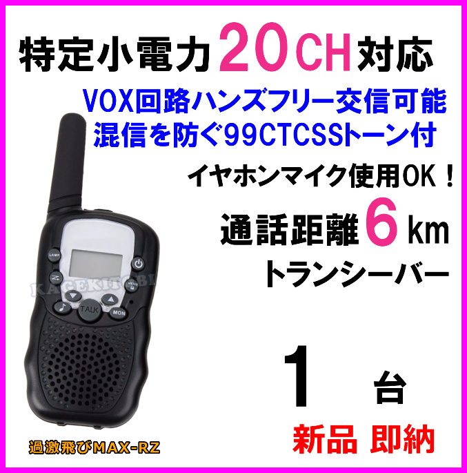 | 特定小電力 20CH対応 過激に飛びMAX:RZ 多機能・高性能 VOX&トーン付き トランシーバー イヤホンマイク使用OK♪1台 新品 国内倉庫より即納 | |