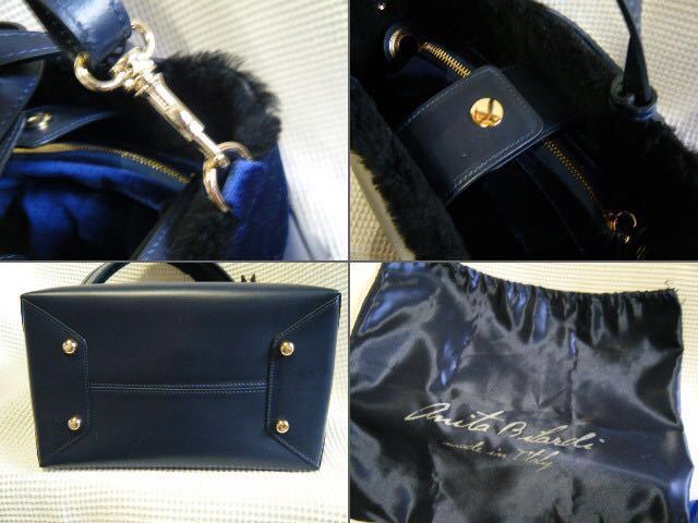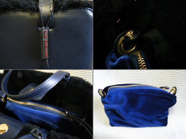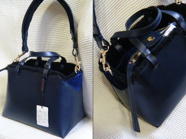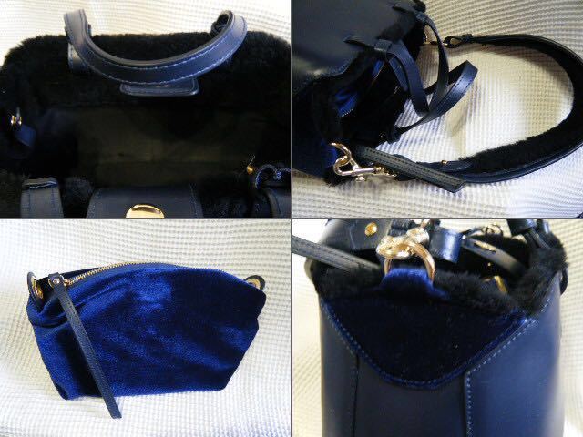 ☆肩掛けの持ち手の裏側とバック本体の内側8センチ幅でファーが付いてます。又バック側面のベロア素材が張られていてオシャレで上品なバックです。