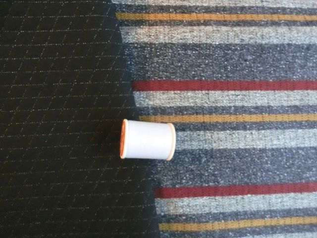 | ★デニム調エンジカラシグレーボーダー×濃紺ひし形リバーシブル生地 | |||
