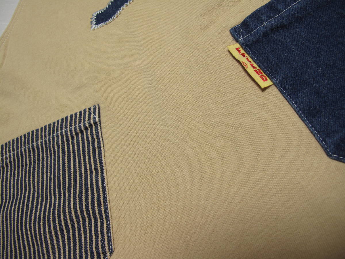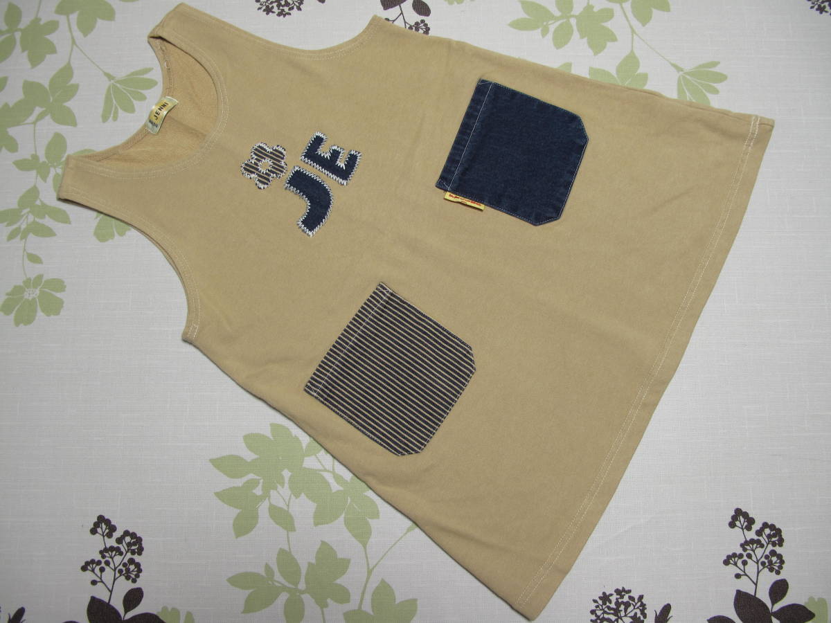 デニム生地のアップリケとポケットが可愛いワンピースです。