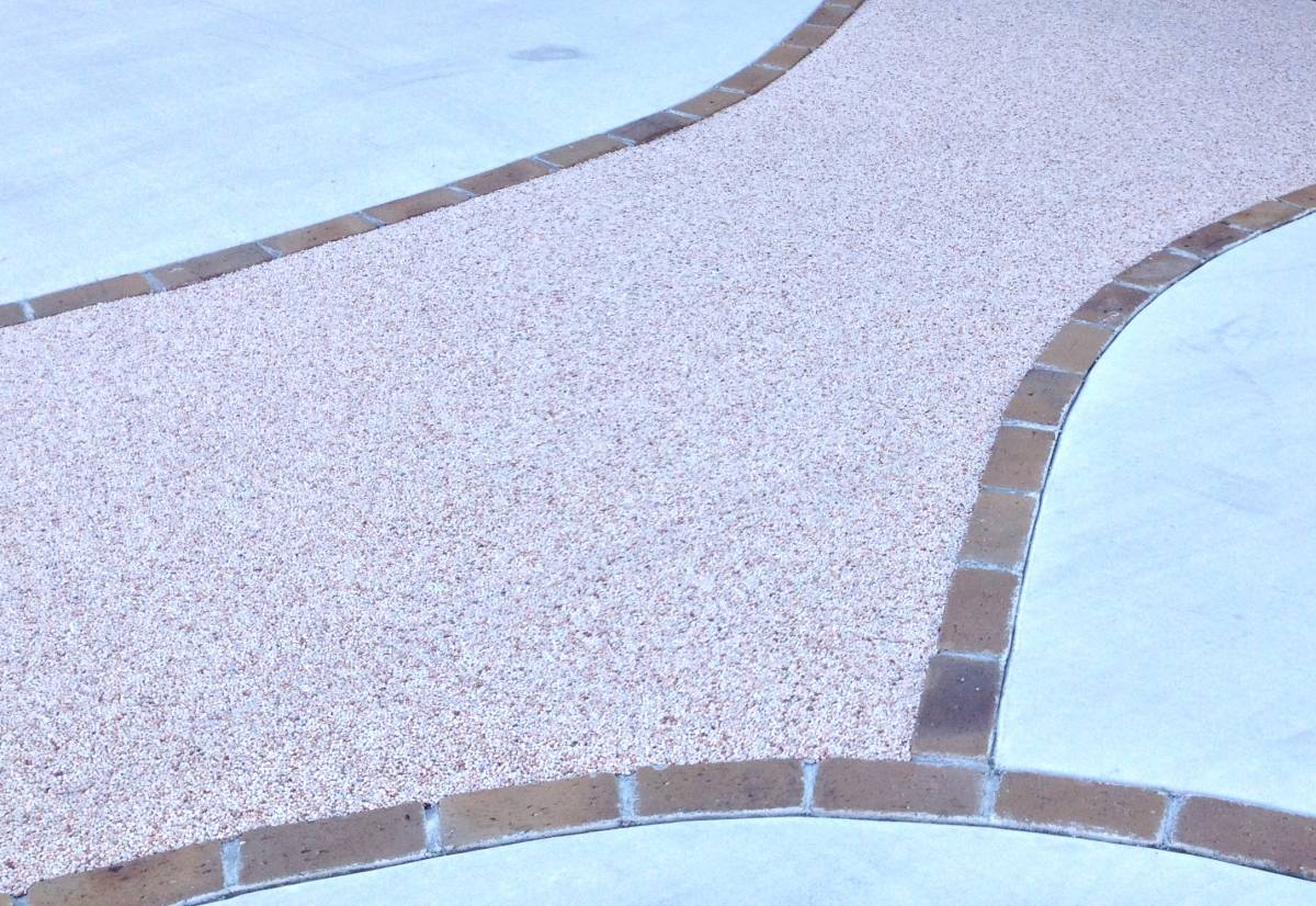 ※ 庭の雑草対策には、土の下地に砕石を50㎜厚程度で敷き固め、2~30㎜厚で、樹脂舗装します。