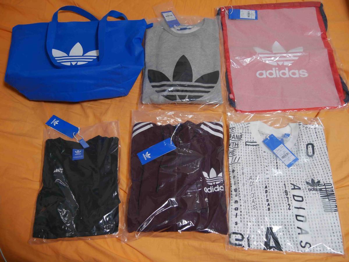 おまけとして、写真に載っているアディダスの大きなロゴが入った青いバックもお付けいたします。